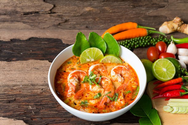 Traditional Coconut Soup with Lemongrass, Galangal & Kaffir Lime leaves.